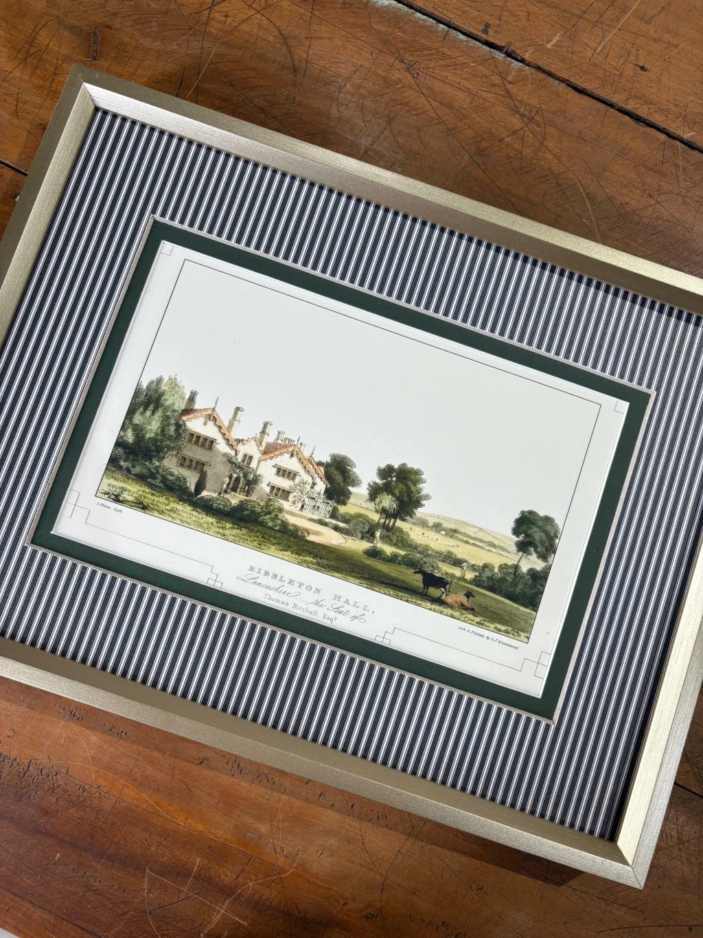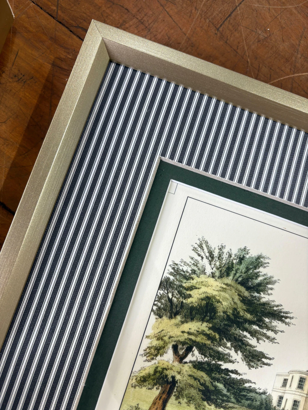 Moldura prata com 2 paspatur, sendo 1 deles listrado verde, com vidro liso incolor