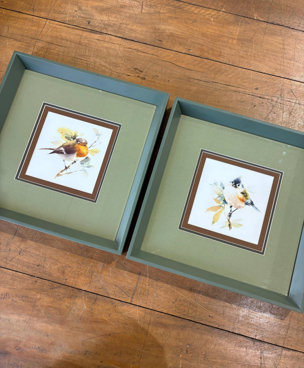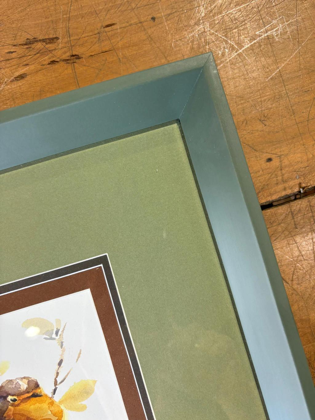 Moldura verde chanfrada, com 3 paspatur, com vidro liso incolor