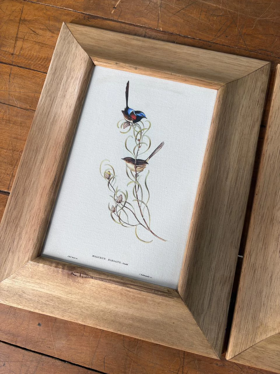 02 quadros impressão no tecido com moldura madeira larga 34x44 cada peça