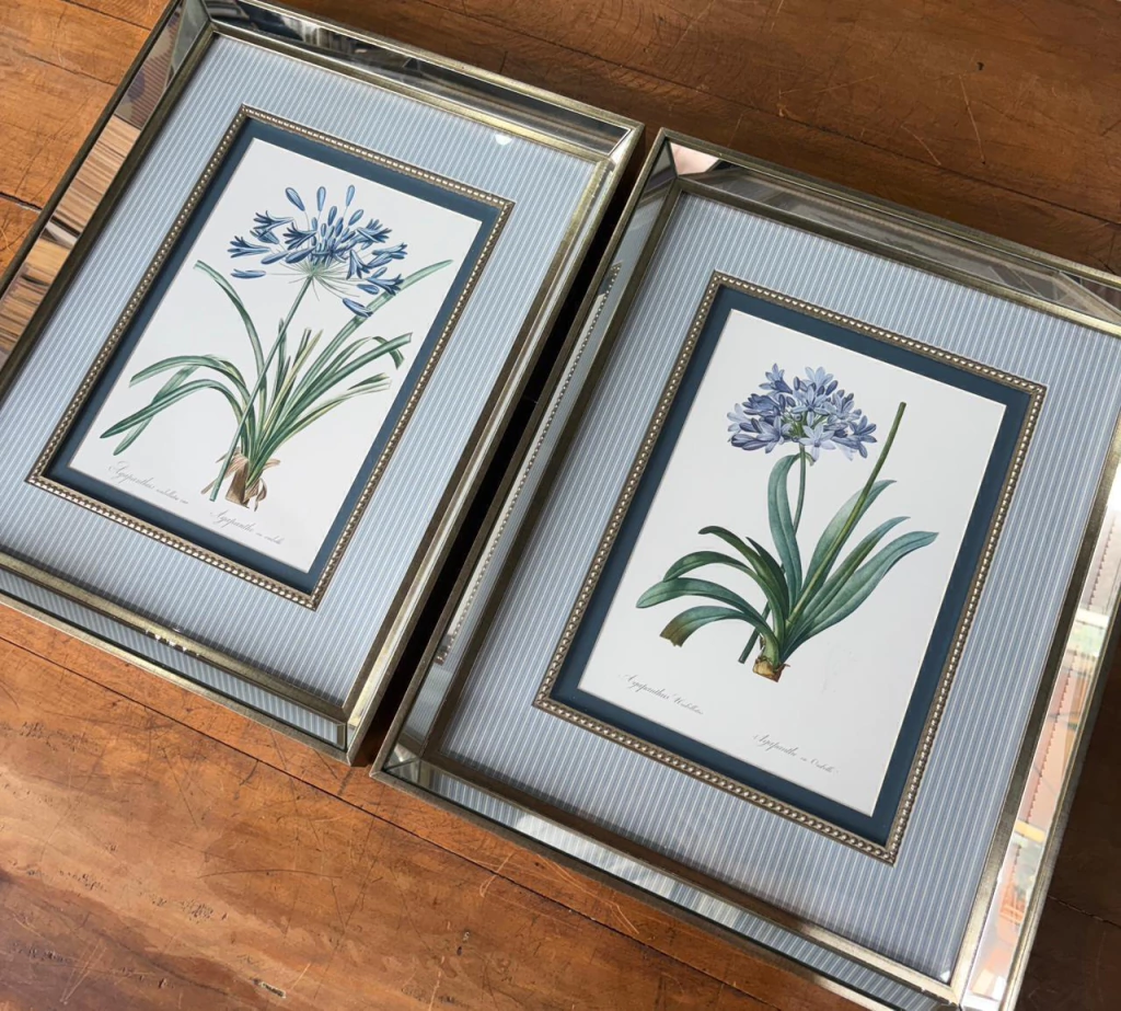 02 quadros impressão fine art com paspatur listrado, friso de bolinhas, moldura revestida em espelho prata envelhecida e vidro comum 44x54 cada