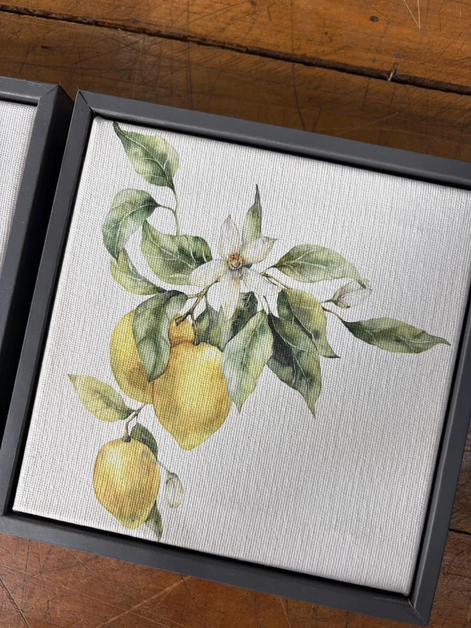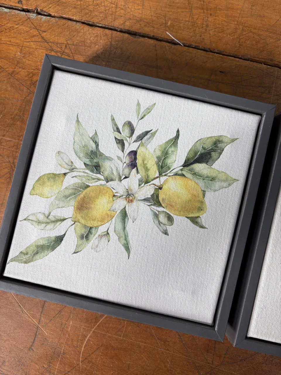 02 quadros impressão no tecido com moldura de acabamento cinza 17x17
