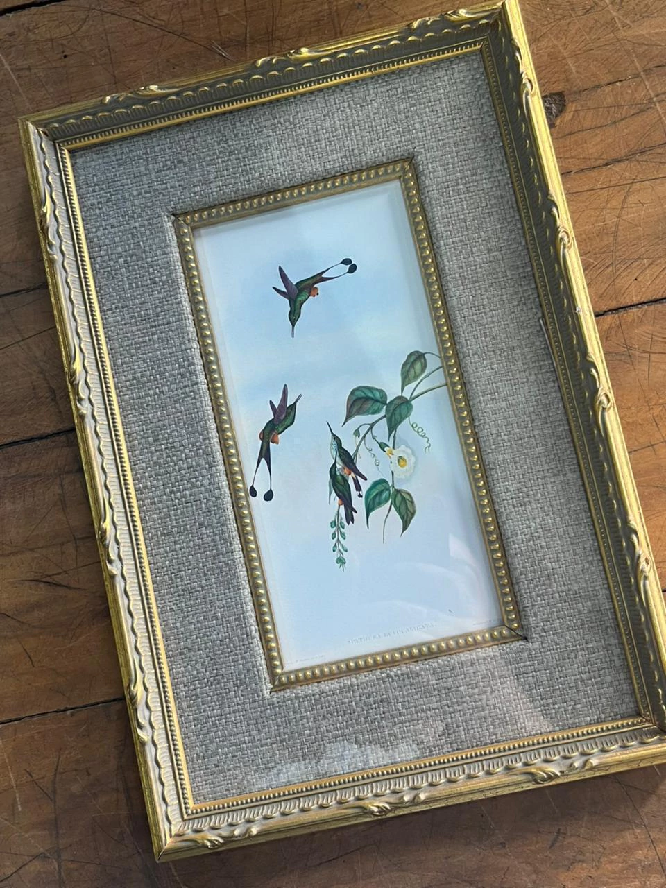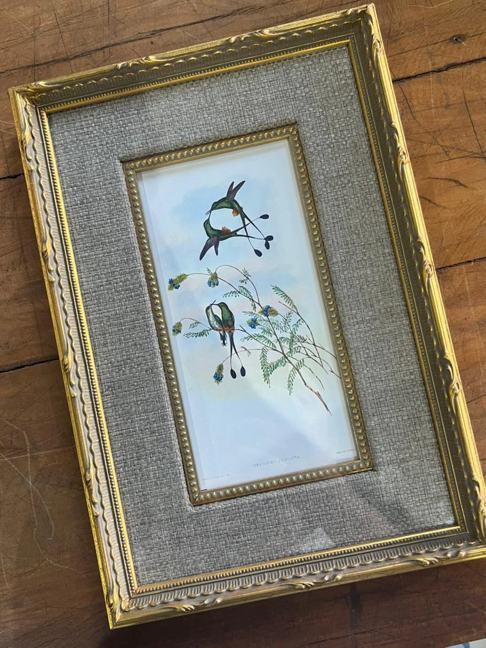 02 quadros impressão fine art com paspatur texturizado, moldura trabalhada dourada, friso bolinhas e vidro comum 22x32 cada peça
