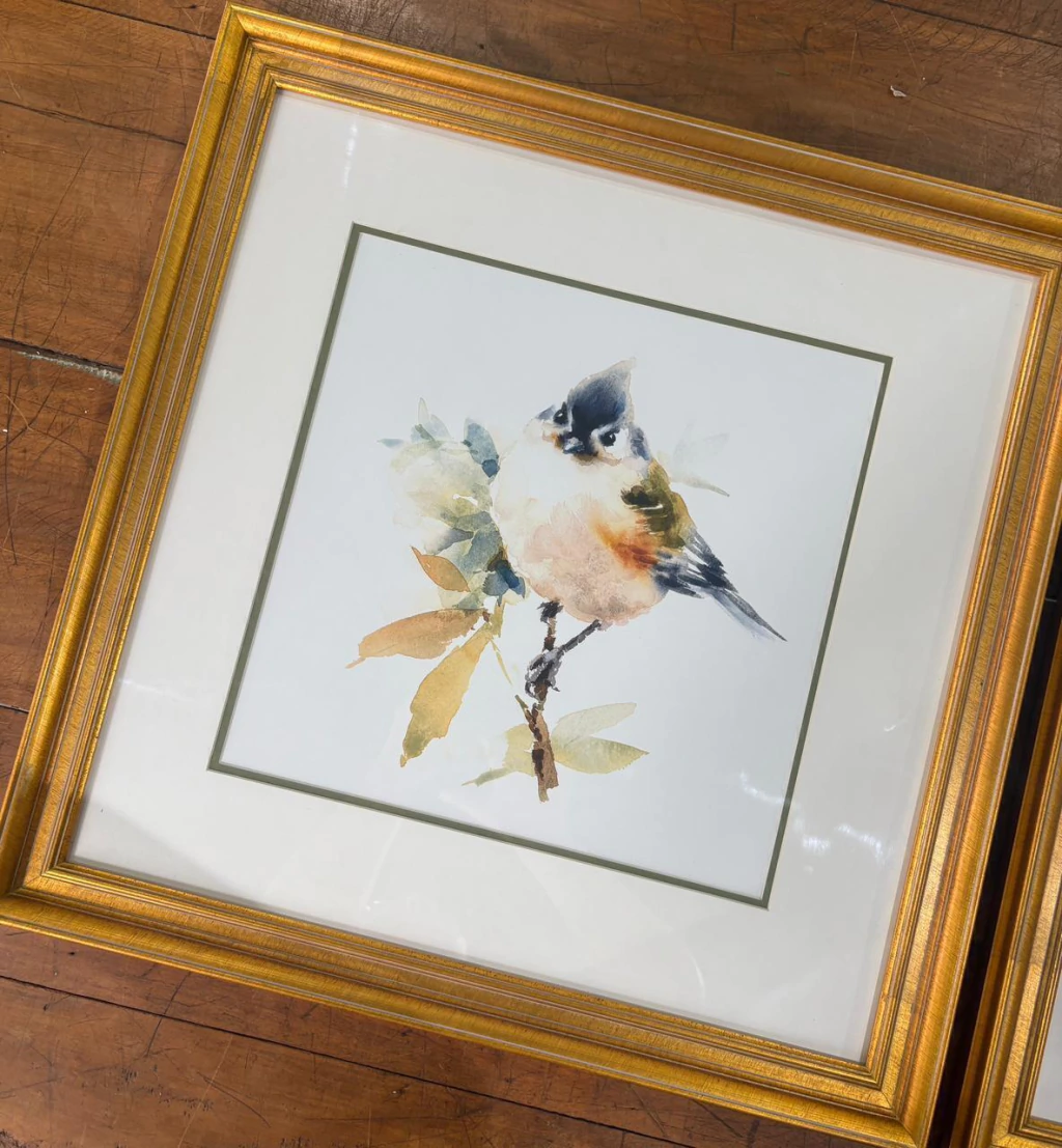 02 quadros impressão fine art com paspatur, moldura dourada e vidro comum 50x50 cada peça